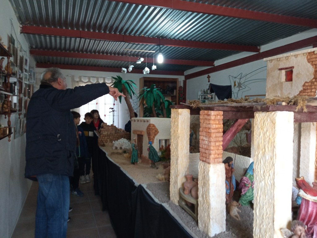 Este año es un belén con figuras muy grandes y lleno de curiosos detalles, además Jesús se preparó un par de historias preciosas que nos contó antes de empezar la visita. Una de ellas era el cuento titulado: «El cuarto rey mago: Artabán», basado en el libro de Henry Van Dyke. Nos encantó a todos. La segunda fue » la Historia de Navidad». los chicos y chicas de 5º disfrutamos mucho de la actividad del día porque además Jesús nos enseñó como crea todas las casas, nos regaló un belén a cada uno, Ascen nos dio una galleta y cuando volvíamos la madre de Iker también nos ofreció entrar a la pastelería para tomar una pasta, así que la mañana fue redonda. Con los peques de infantil también estuvo genial porque además de contarnos la historia, visitar el belén, comer la galleta y llevarnos el belén de regalo pudimos acercarnos a ver los caballos del campo de al lado.