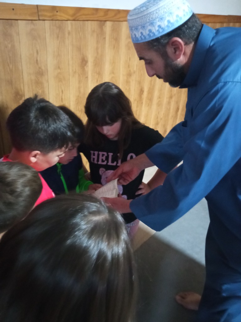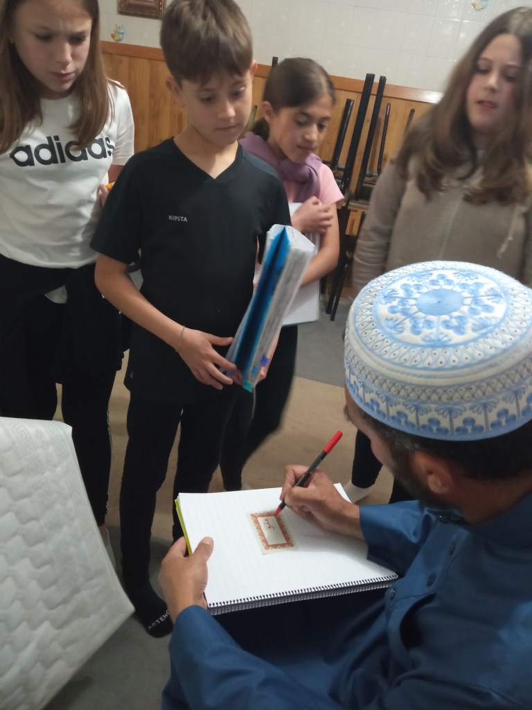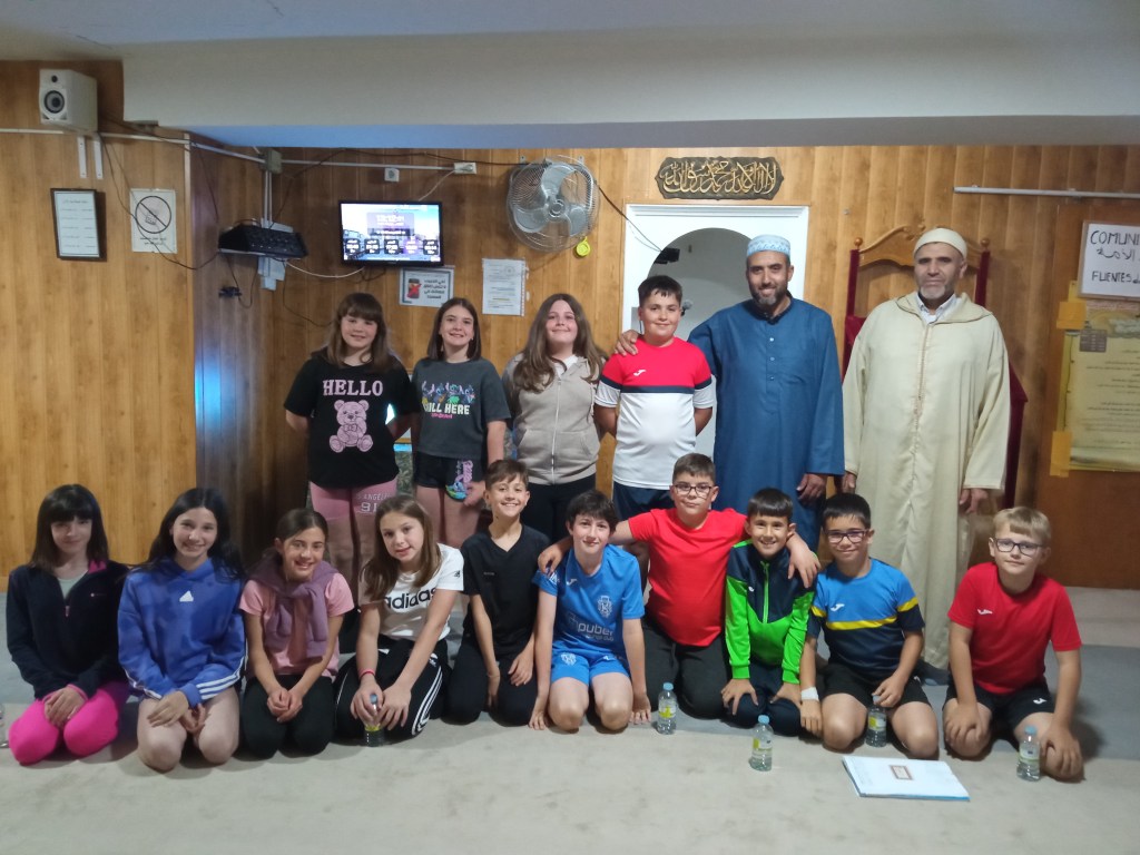 Esta semana los chicos y chicas de 5º en nuestra clase de reli hemos tenido la oportunidad de visitar la Mezquita que hay en Fuentes. Nos han explicado muchas cosas y hemos recordado cuales eran los 5 principios de la religión islámica, tal y como ya lo habíamos estudiado en clase. El recibimiento no podía ser mejor, viendo como se prepara el té, también nos han enseñado como realizan el rezo , hemos podido ver y tocar el Corán, nos han escrito nuestros nombres en lengua árabe y hemos finalizado con un gran banquete a base de zumos, dulces, etc.