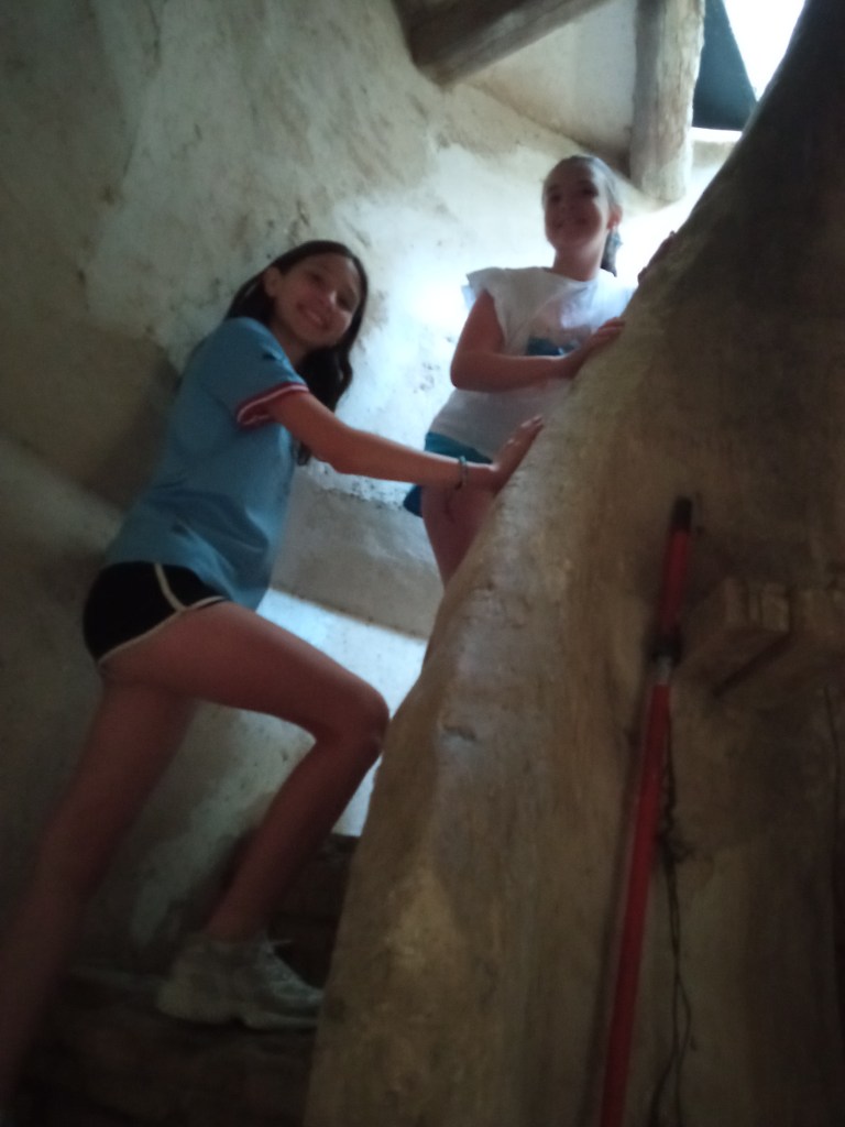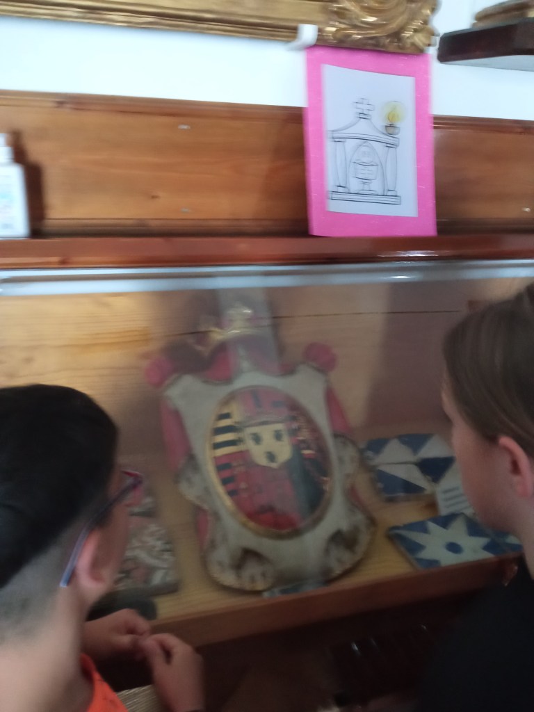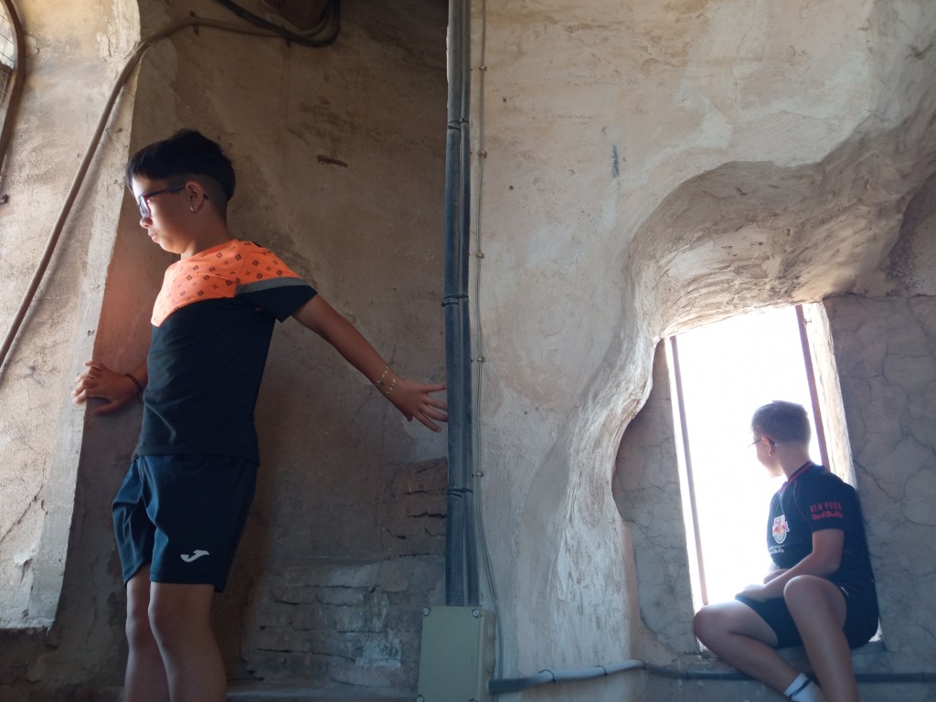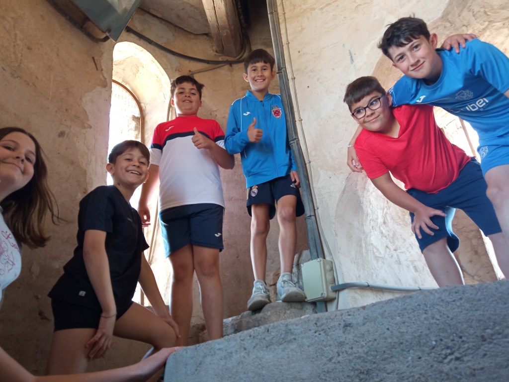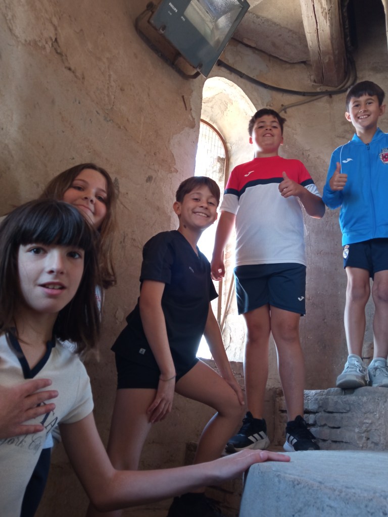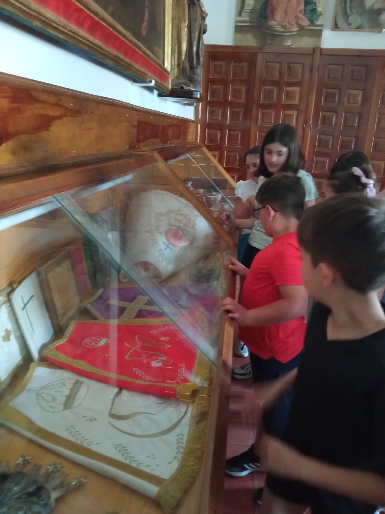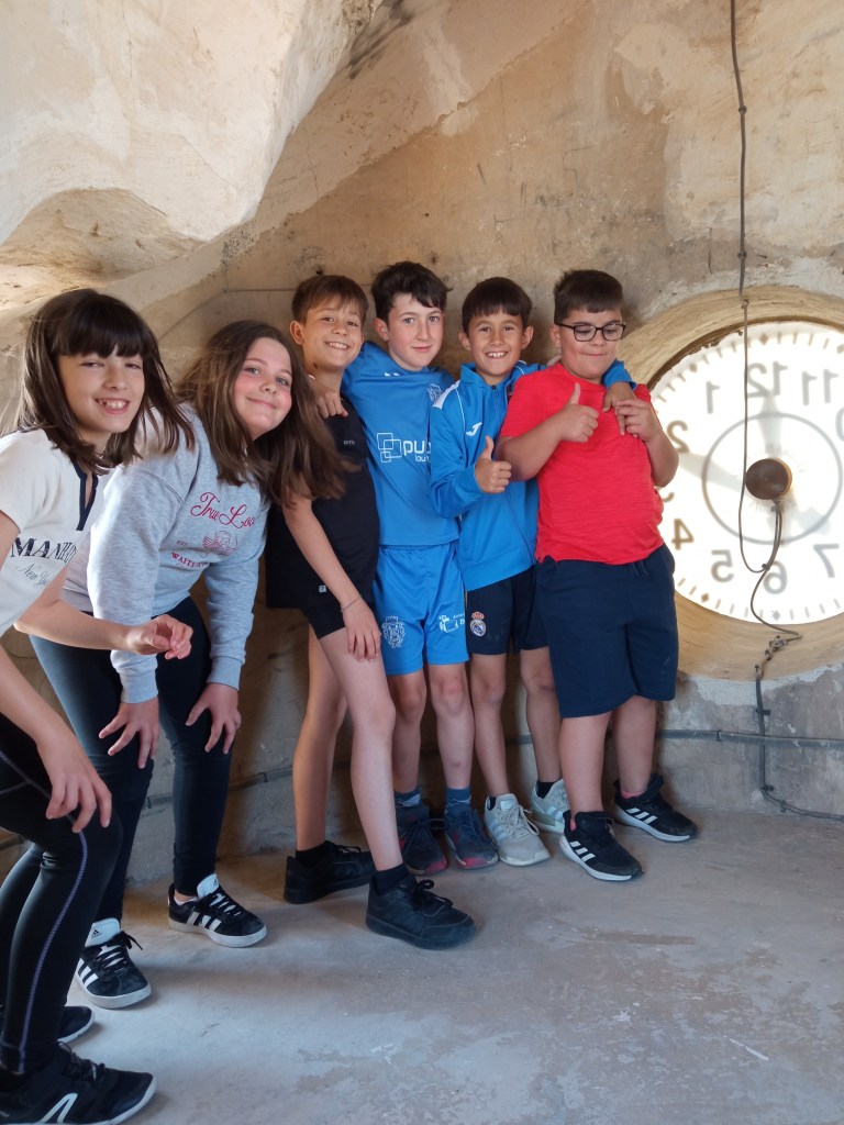 Hoy hemos tenido la oportunidad de ver el valle que se divisa desde lo alto de la torre de la iglesia( como lo hicieron hace años durante la guerra civil española. Entonces la torre sirvió de torre de vigilancia ante el enemigo y en su restauración se encontraron restos de artillería de aquella época) . Nuestra clase de reli ha sido diferente: hemos salido del aula para ver de cerca, tocar, conocer ,…. diferentes objetos, ropajes, y obras artísticas que se encuentran en la sacristía , también hemos visto como está construida la torre por dentro( a partir de un cilindro se iban disponiendo los escalones formando un torbellino que formaba la escalera de caracol).