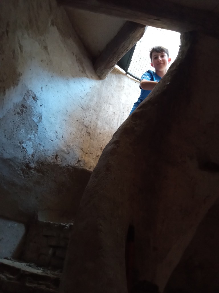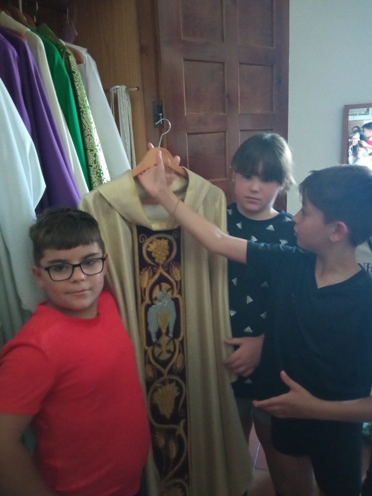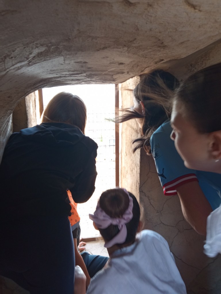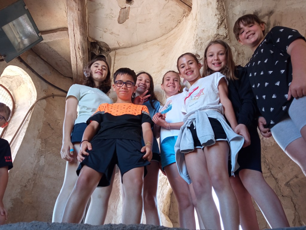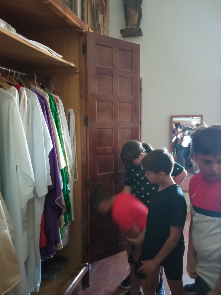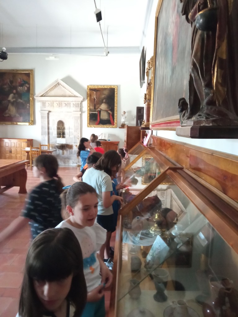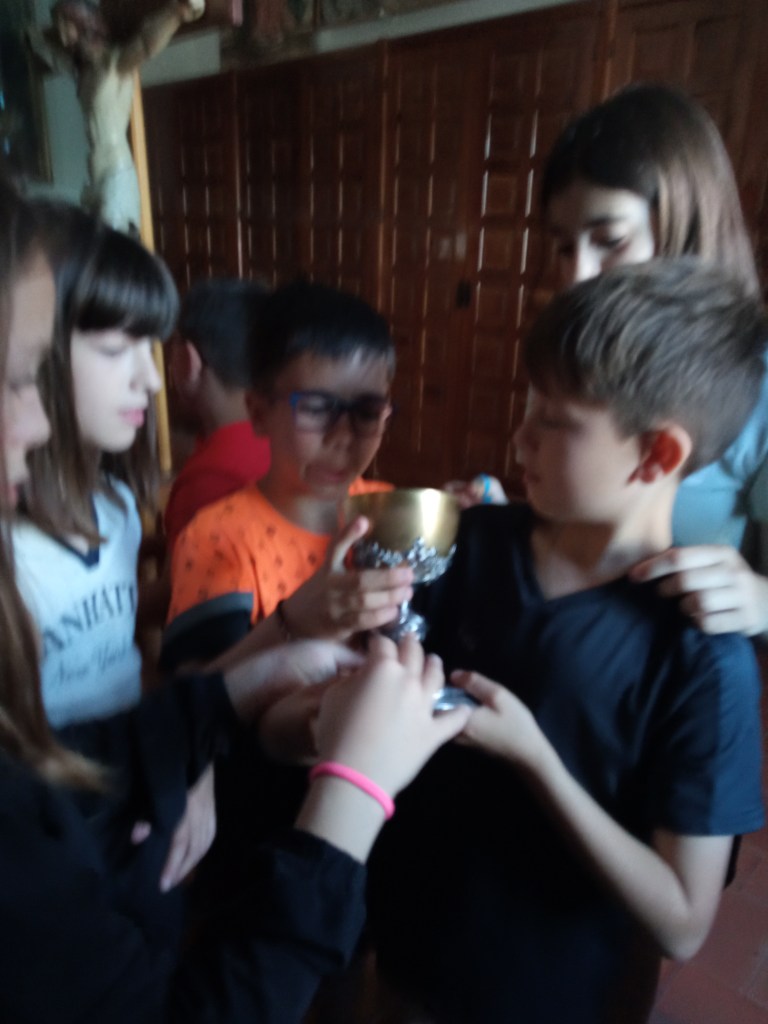 Hoy hemos tenido la oportunidad de ver el valle que se divisa desde lo alto de la torre de la iglesia( como lo hicieron hace años durante la guerra civil española. Entonces la torre sirvió de torre de vigilancia ante el enemigo y en su restauración se encontraron restos de artillería de aquella época) . Nuestra clase de reli ha sido diferente: hemos salido del aula para ver de cerca, tocar, conocer ,…. diferentes objetos, ropajes, y obras artísticas que se encuentran en la sacristía , también hemos visto como está construida la torre por dentro( a partir de un cilindro se iban disponiendo los escalones formando un torbellino que formaba la escalera de caracol).