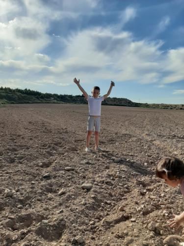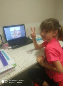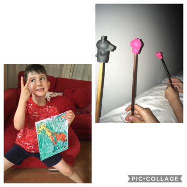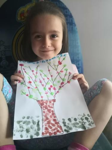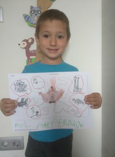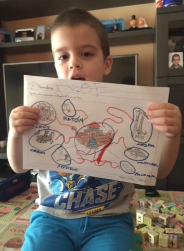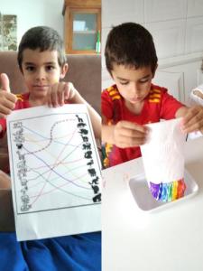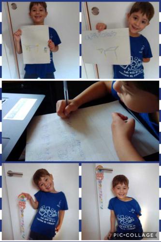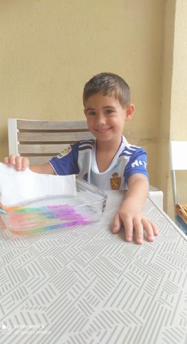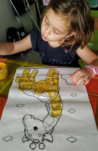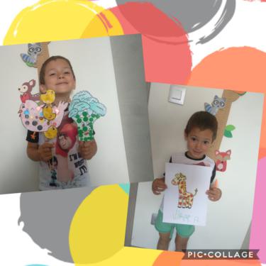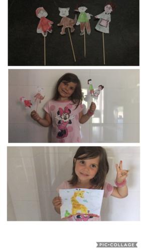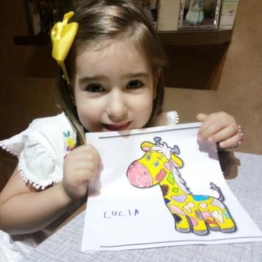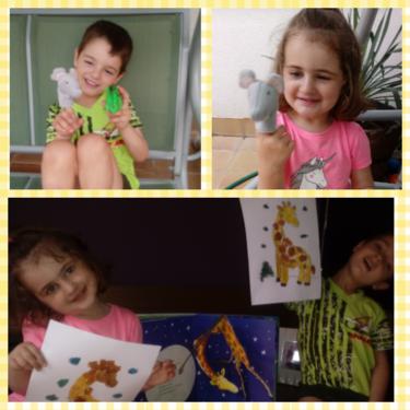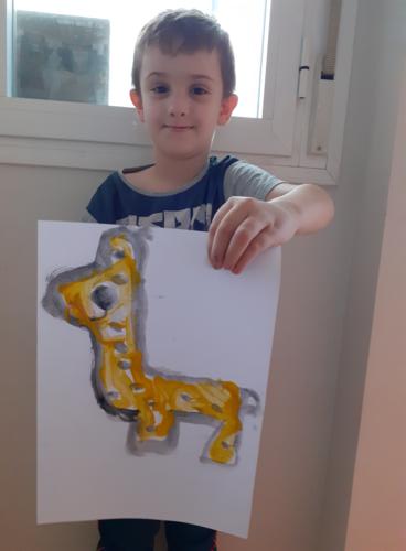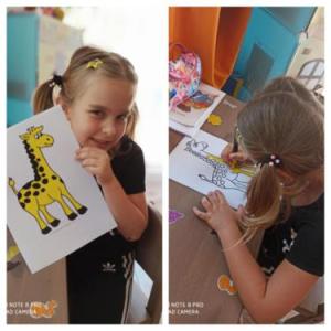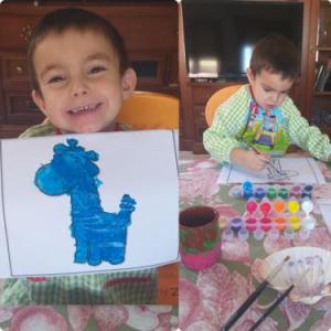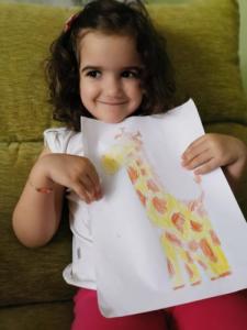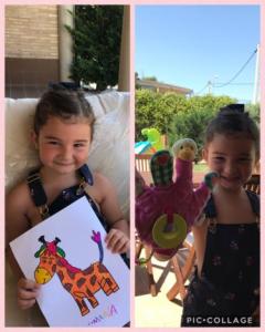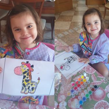 LUCÍA , ALBERTO Y CARMEN TAMBIÉN HAN PINTADO MUY CHULA A SU JIRAFA DROMEDARIA!