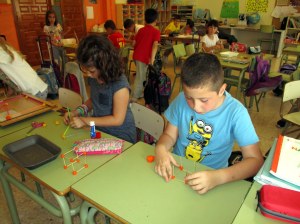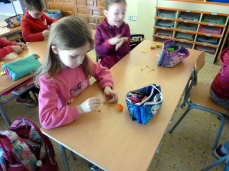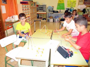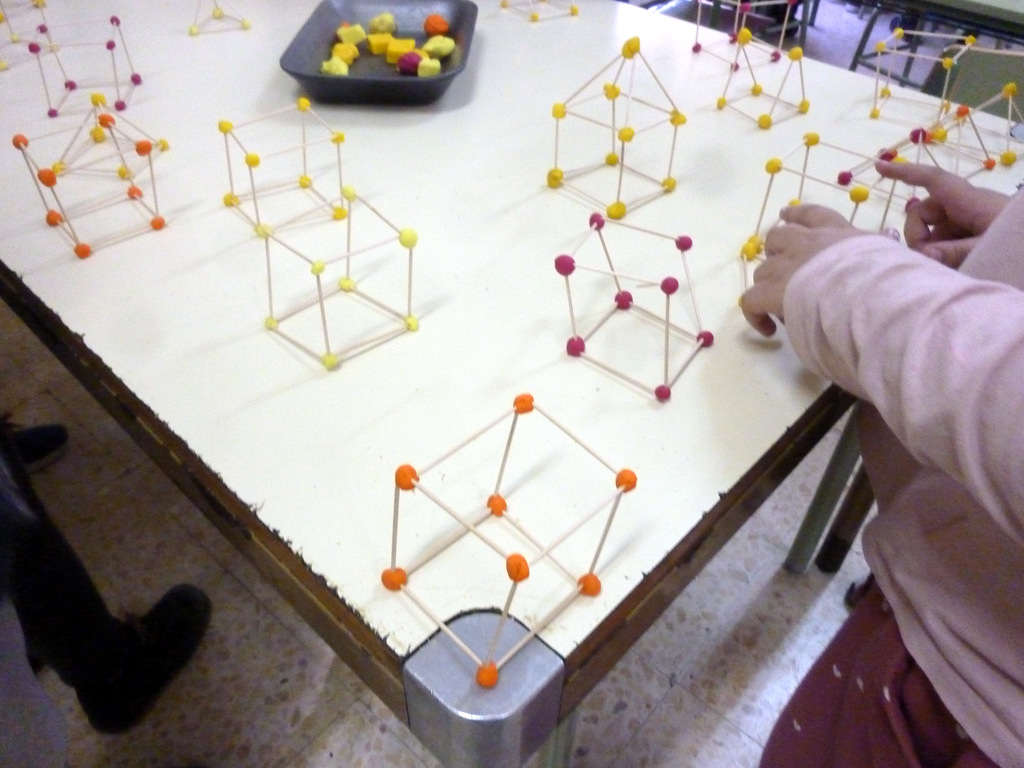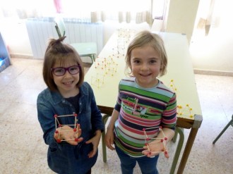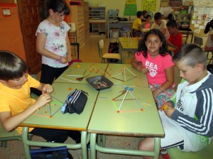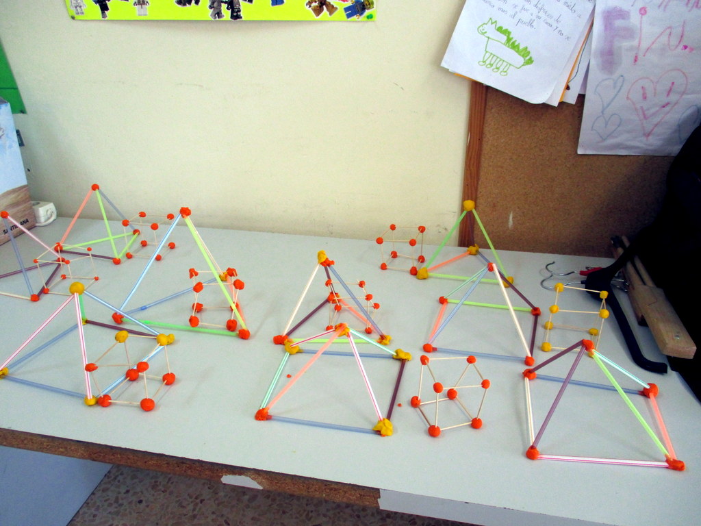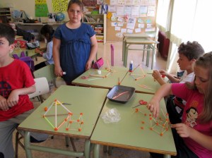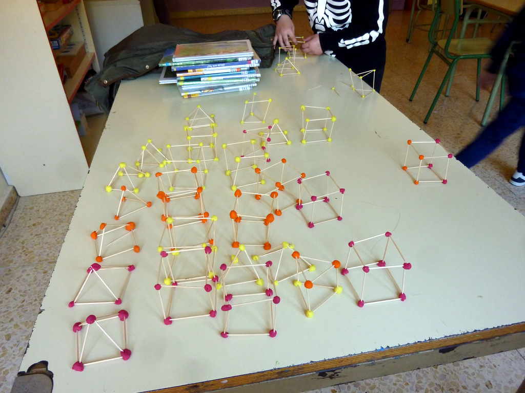 Después, en la clase de plástica estuvimos construyendo nuestros prismas, cubos y prirámides con volumen.