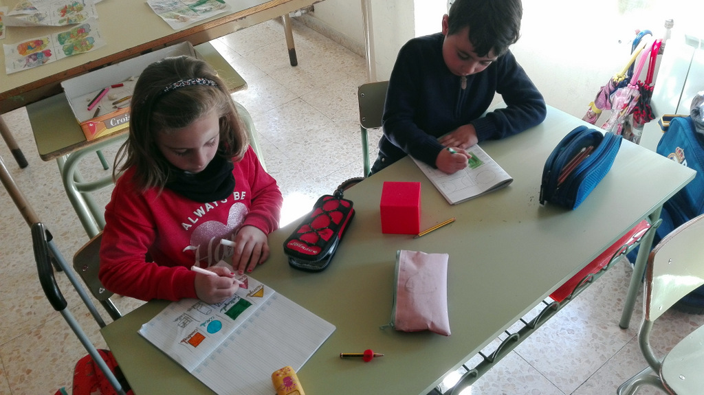 En matemáticas, en la clase de primero hemos estado trabajando con los cuerpos geométricos. Primero hemos descubierto su forma, caras y vértices.