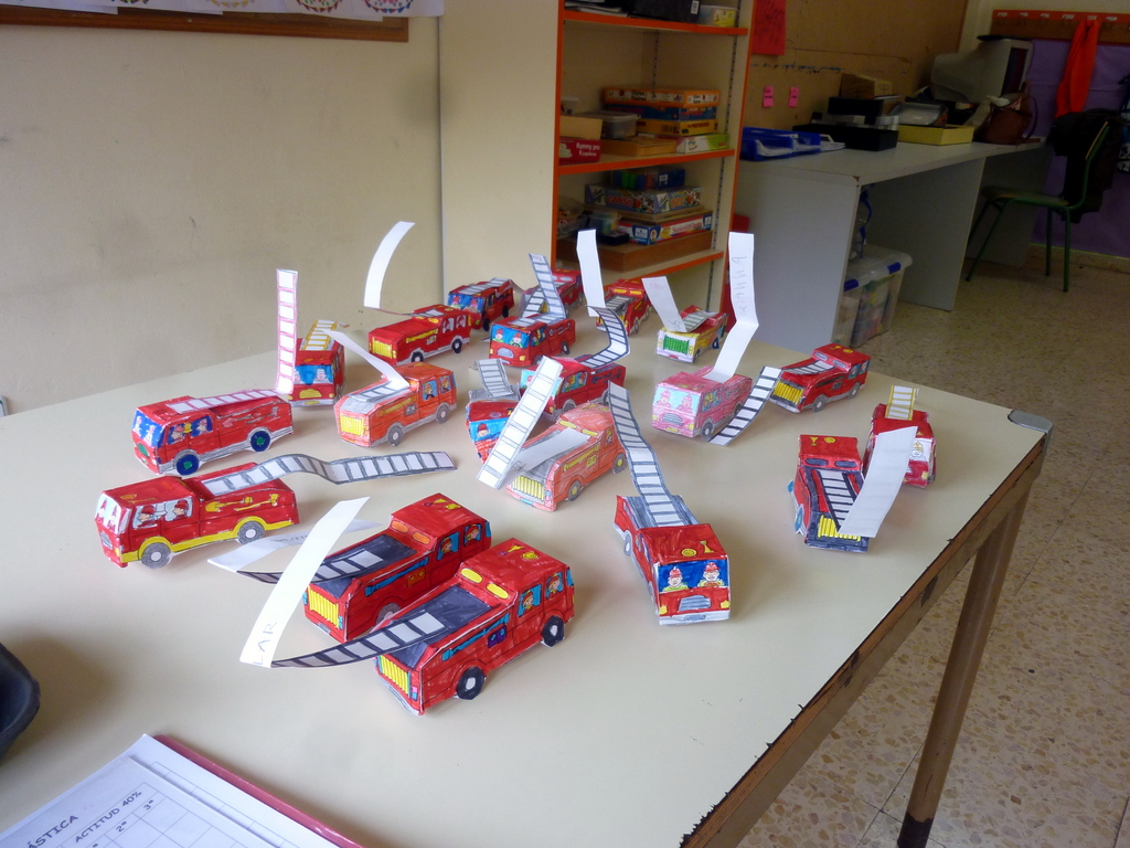 Después de la excursión al Museo del Fuego, hicimos nuestro propio camión de bomberos en 3D. Se pinta, se recorta, se dobla y…con un poco de ayuda se monta.