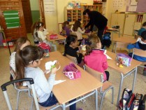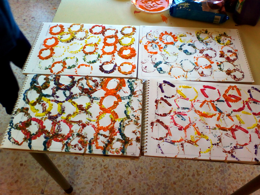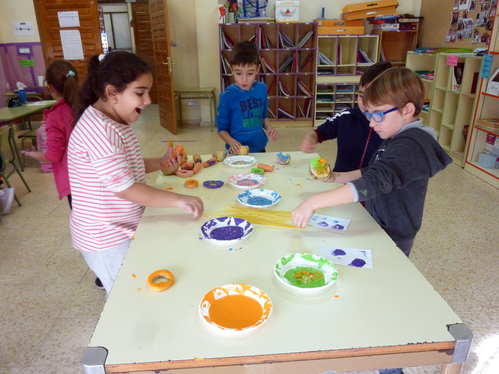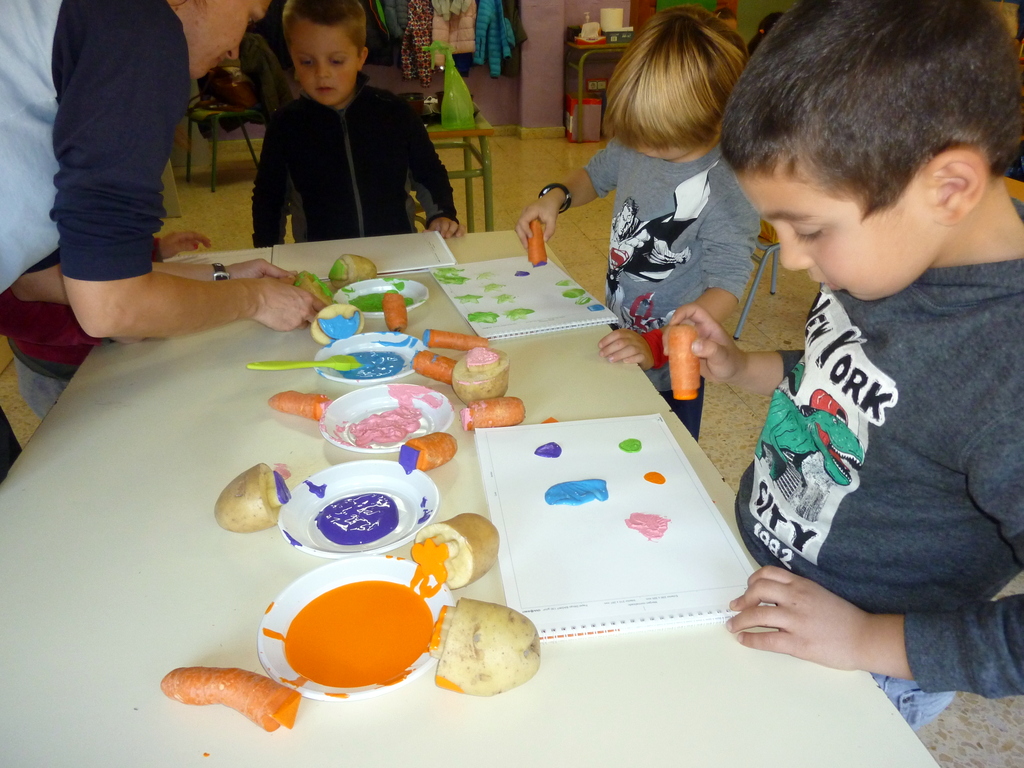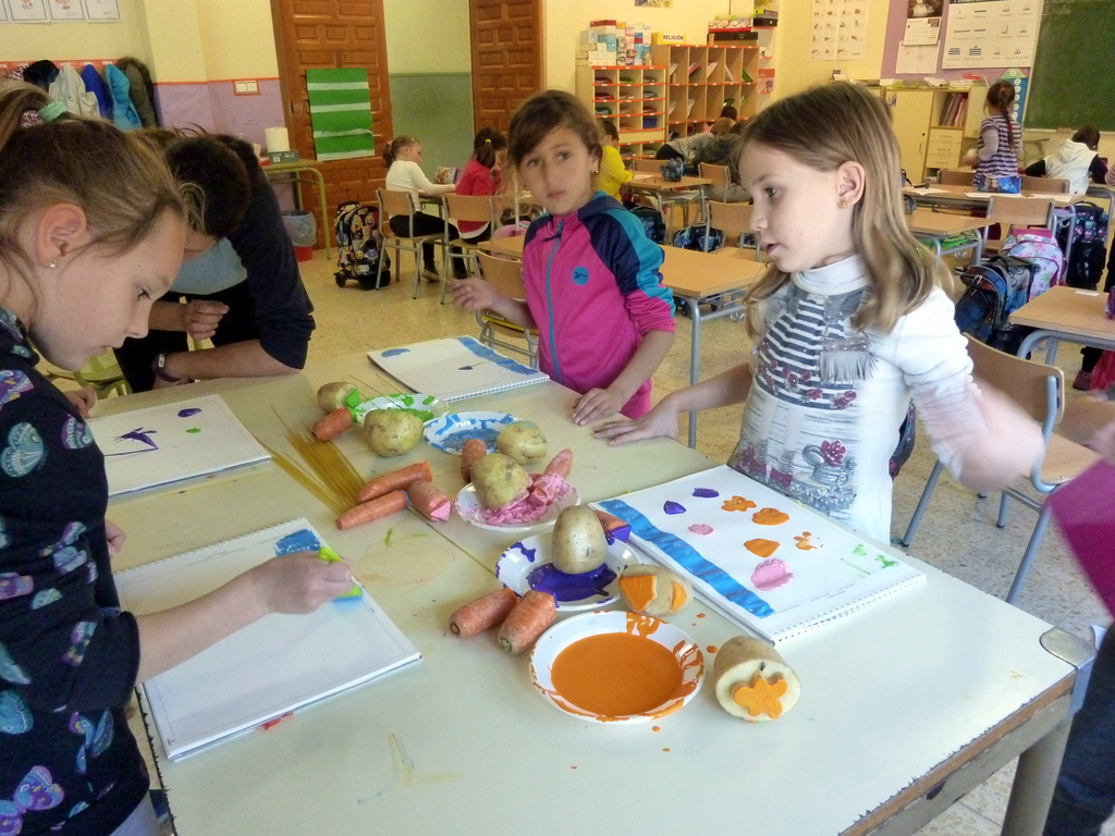 Así quedaron. Después, con el tema de los alimentos, César nos preparó unos tampones estupendos en patatas y zanahorias.