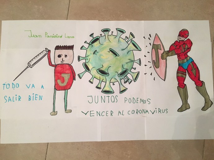 RETOS 2ºJUNTOS VENCEREMOS 20 marzo, 2020 olamibla YA NOS VAN LLEGANDO DIBUJOS DE NUESTROS ALUMNOS DE 2º. JUAN ASÍ SE IMAGINA EL VIRUS COVID-19 Y A SU SUPERHÉROE QUE LUCHA PARA TERMINAR CON ÉL.