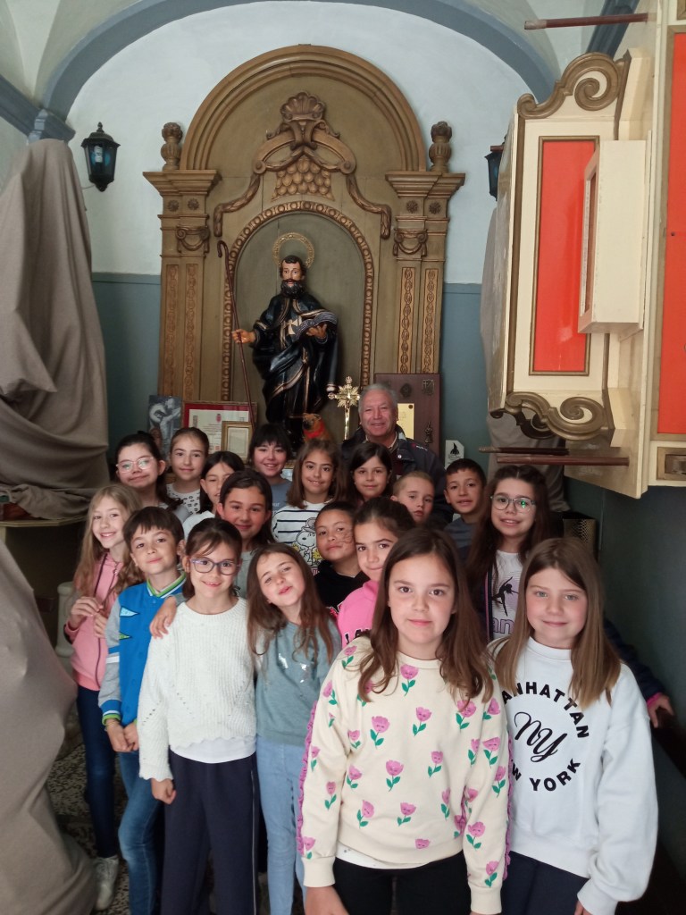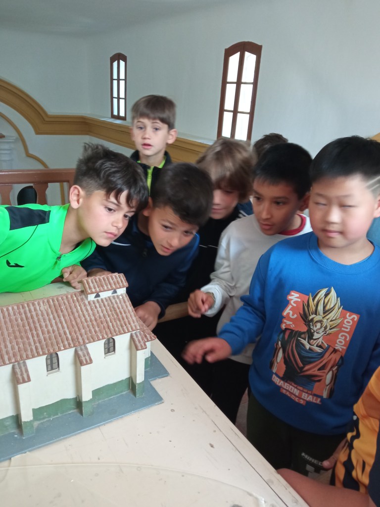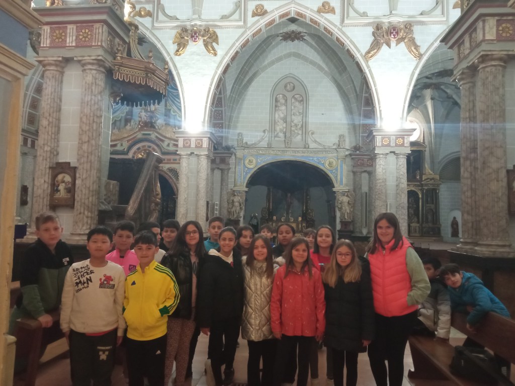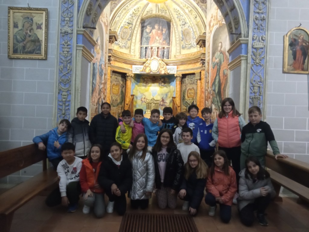 Hoy hemos tenido la oportunidad de ver el valle que se divisa desde lo alto de la torre de la iglesia( como lo hicieron hace años durante la guerra civil española. Entonces la torre sirvió de torre de vigilancia ante el enemigo y en su restauración se encontraron restos de artillería de aquella época) . Nuestra clase de reli ha sido diferente: hemos salido del aula para ver de cerca, tocar, conocer ,…. diferentes objetos, ropajes, y obras artísticas que se encuentran en la sacristía , también hemos visto como está construida la torre por dentro( a partir de un cilindro se iban disponiendo los escalones formando un torbellino que formaba la escalera de caracol).